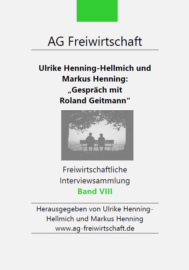 Ulrike Henning-Hellmich und Markus Henning: „Ohne Berücksichtigung des Menschen kann sich nichts verändern!“ – Interview mit Roland Geitmann am 13.07.2008 in Wuppertal, Bad Nenndorf: Arbeitsgemeinschaft Freiwirtschaft, 2025, eBook, 67 Seiten (= Befreiung der Marktwirtschaft von Kapitalismus und Wachstumszwang! Die freiwirtschaftliche Geld- und Bodenreform: Eine Interviewsammlung; 8)