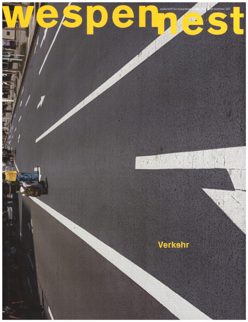 wespennest. zeitschrift für brauchbare texte und bilder, Nr. 187 / November 2024, Wien: Verein Gruppe Wespennest, ISBN 978-3-85458-187-1, 112 Seiten, Themenschwerpunkt: Verkehr, 14,00 €